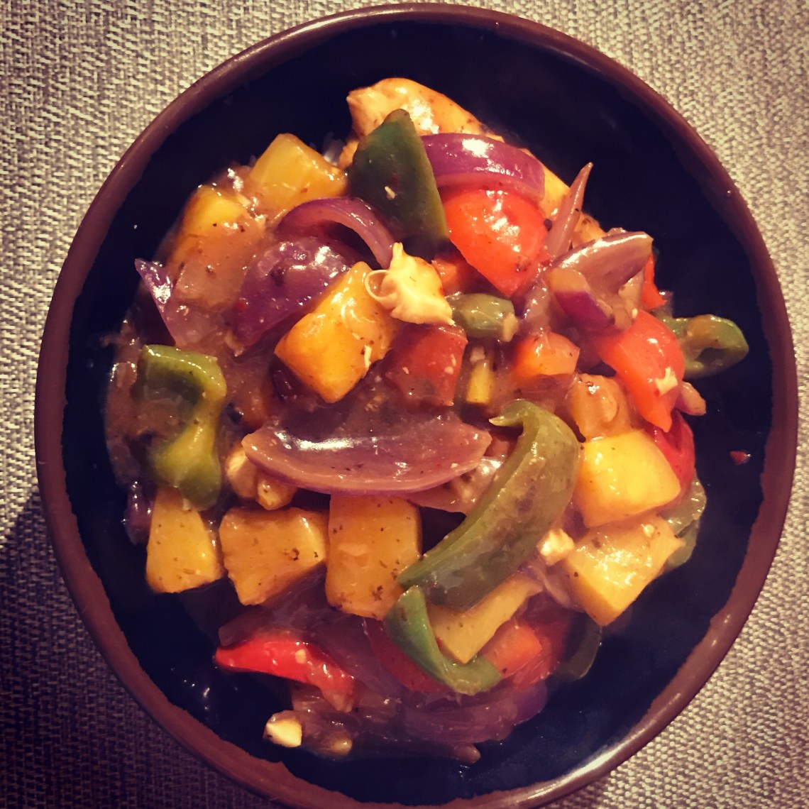 Add the pineapple and sweet and sour mixture and bring to a simmer for about 5 minutes till the chicken is cooked through. Add the cornflour and pineapple slurry and cook for about 1 minute till the sauce has thickened and everything is nicely coated.